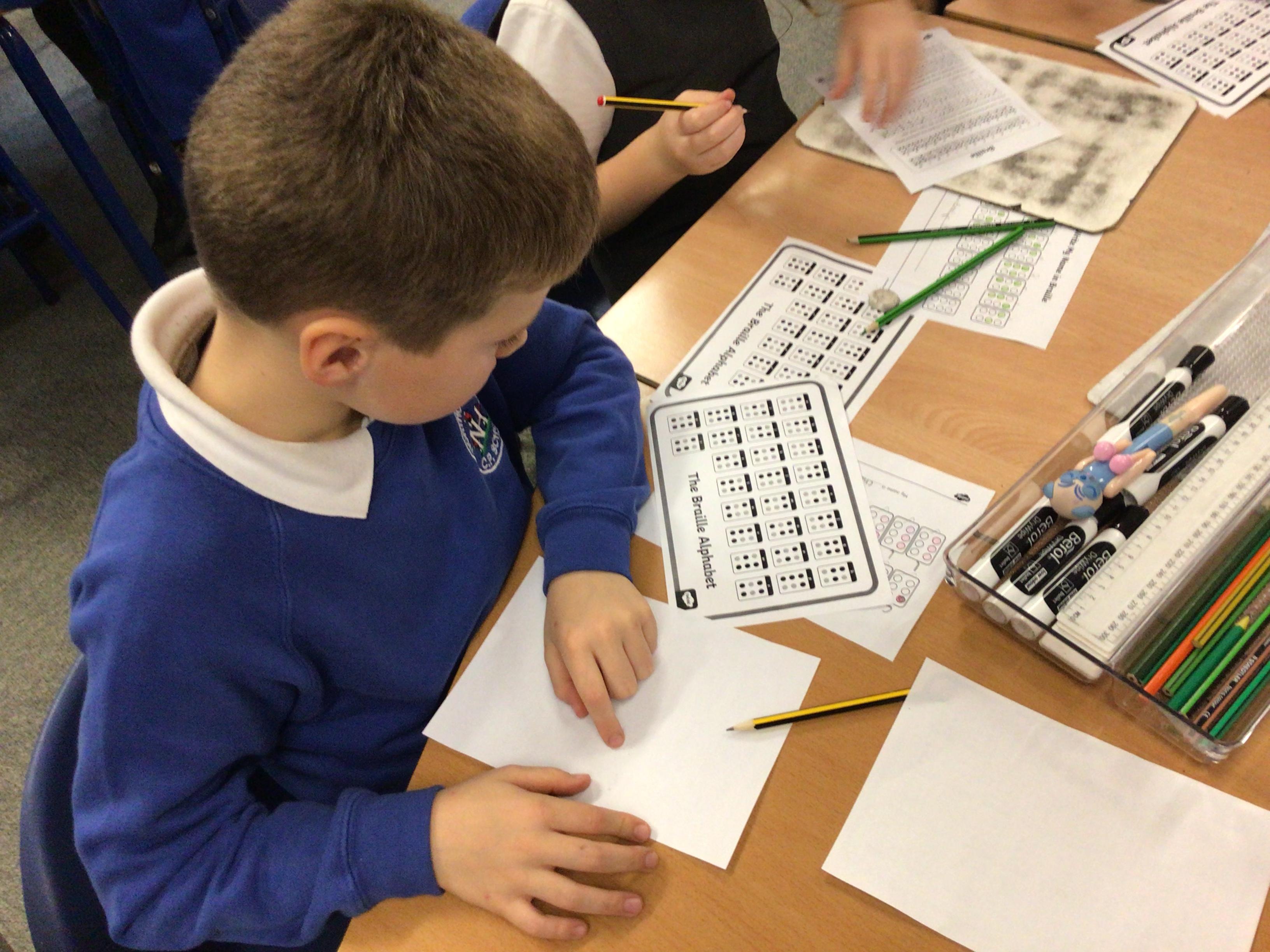 We have been listening to Theo’s story. Theo is a boy who is visually impaired. He talks about how he does not like to be treated differently by others and how he doesn’t like people to do things for him just because of his disability. He explains how good communication helps to support him during his daily activities. Theo is learning braille, incase he looses his sight altogether.