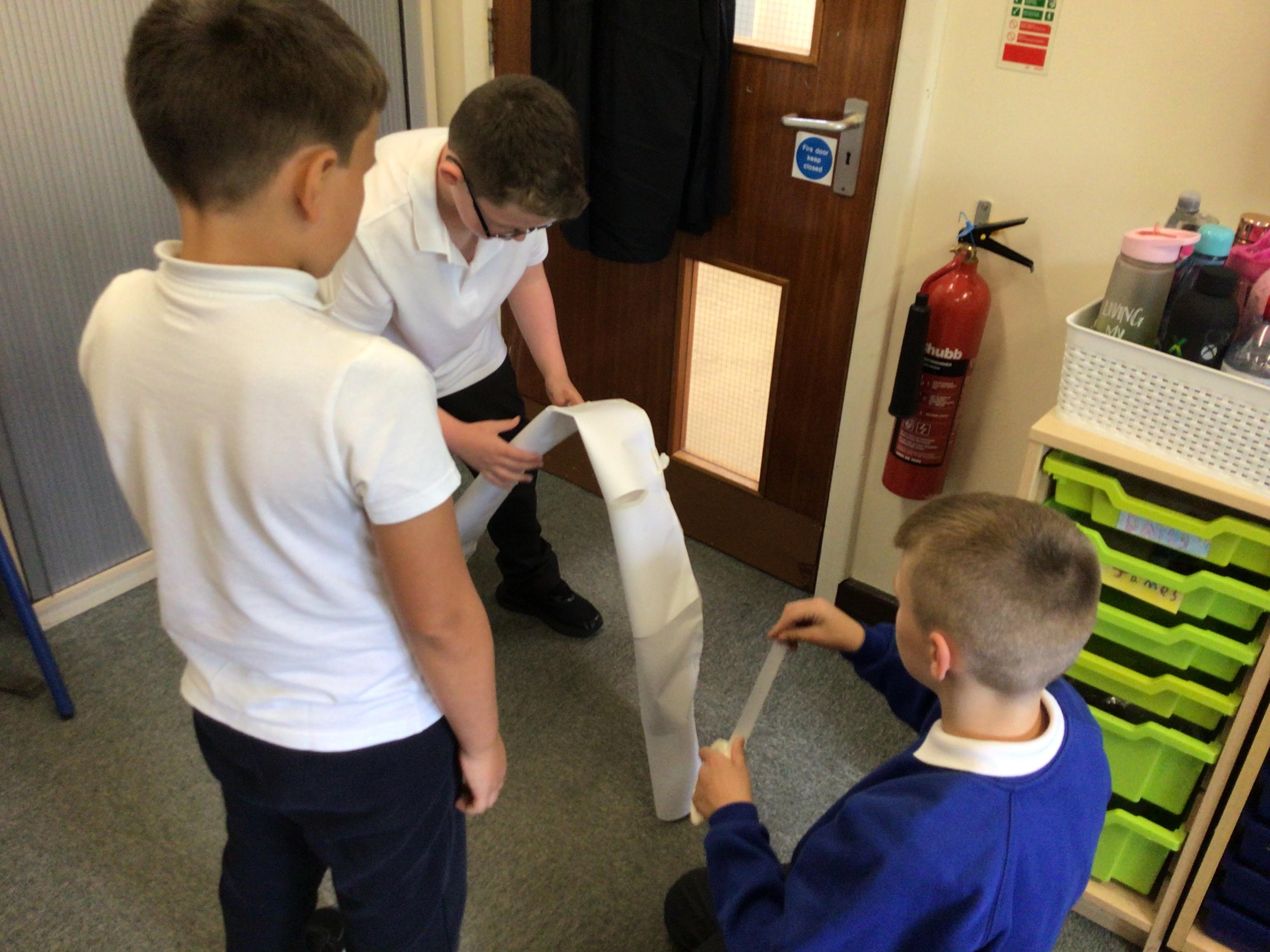 We have enjoyed learning about how Iron Age roundhouses were constructed and what they looked like inside. We wanted to see how big a roundhouse would have been so we measured circles with the diameter of 8cm and we added some items inside that we have been learning about.