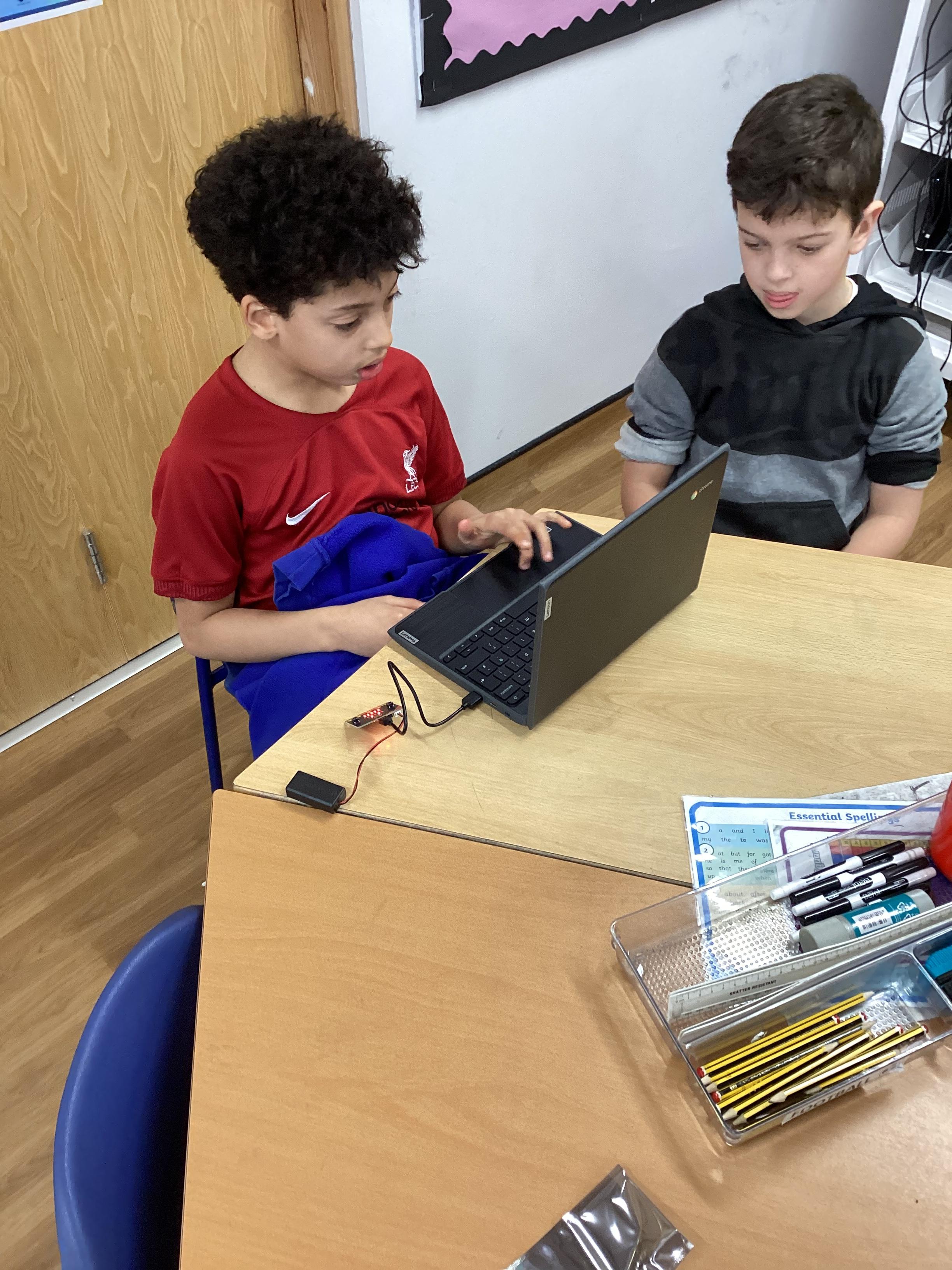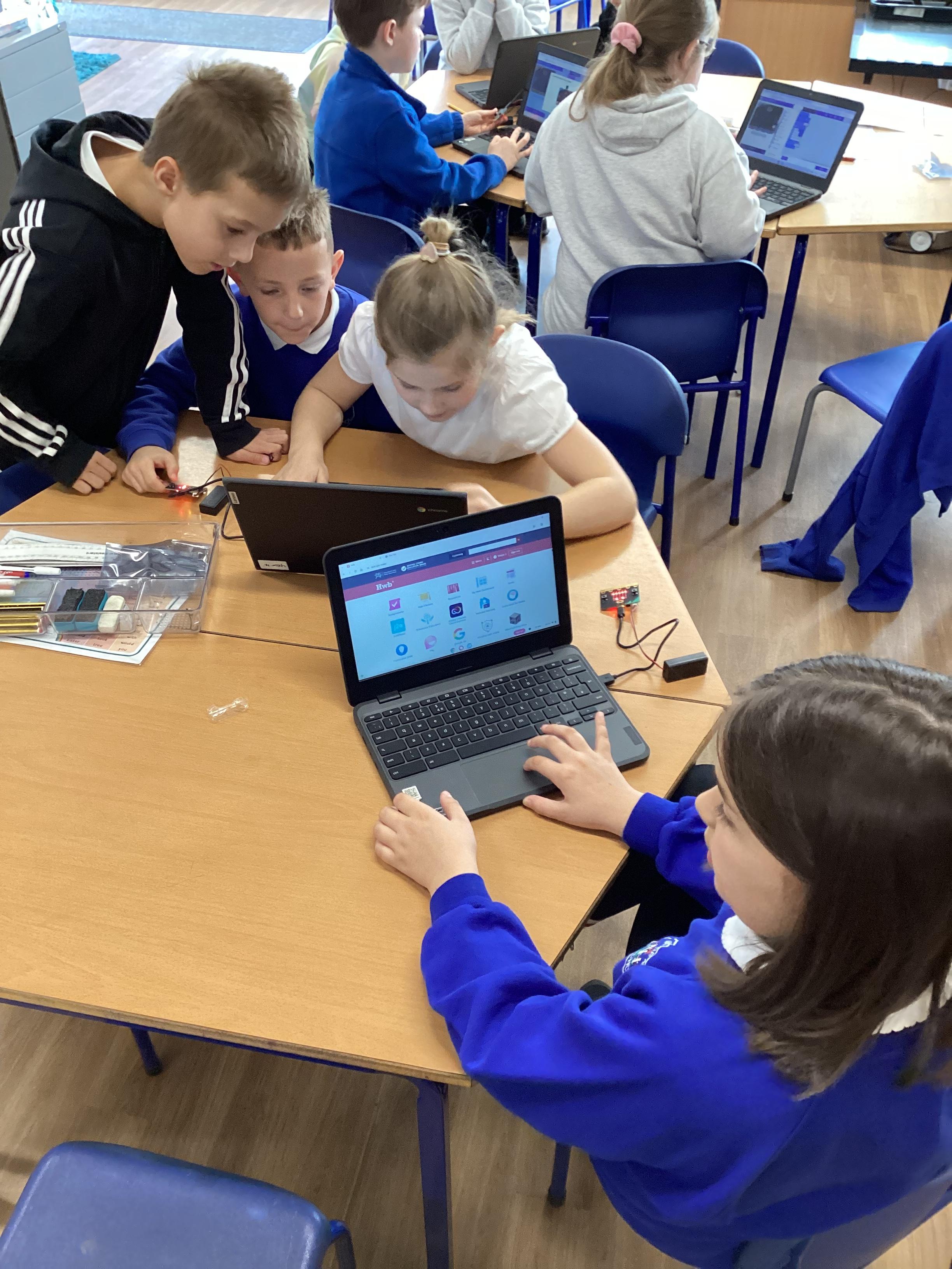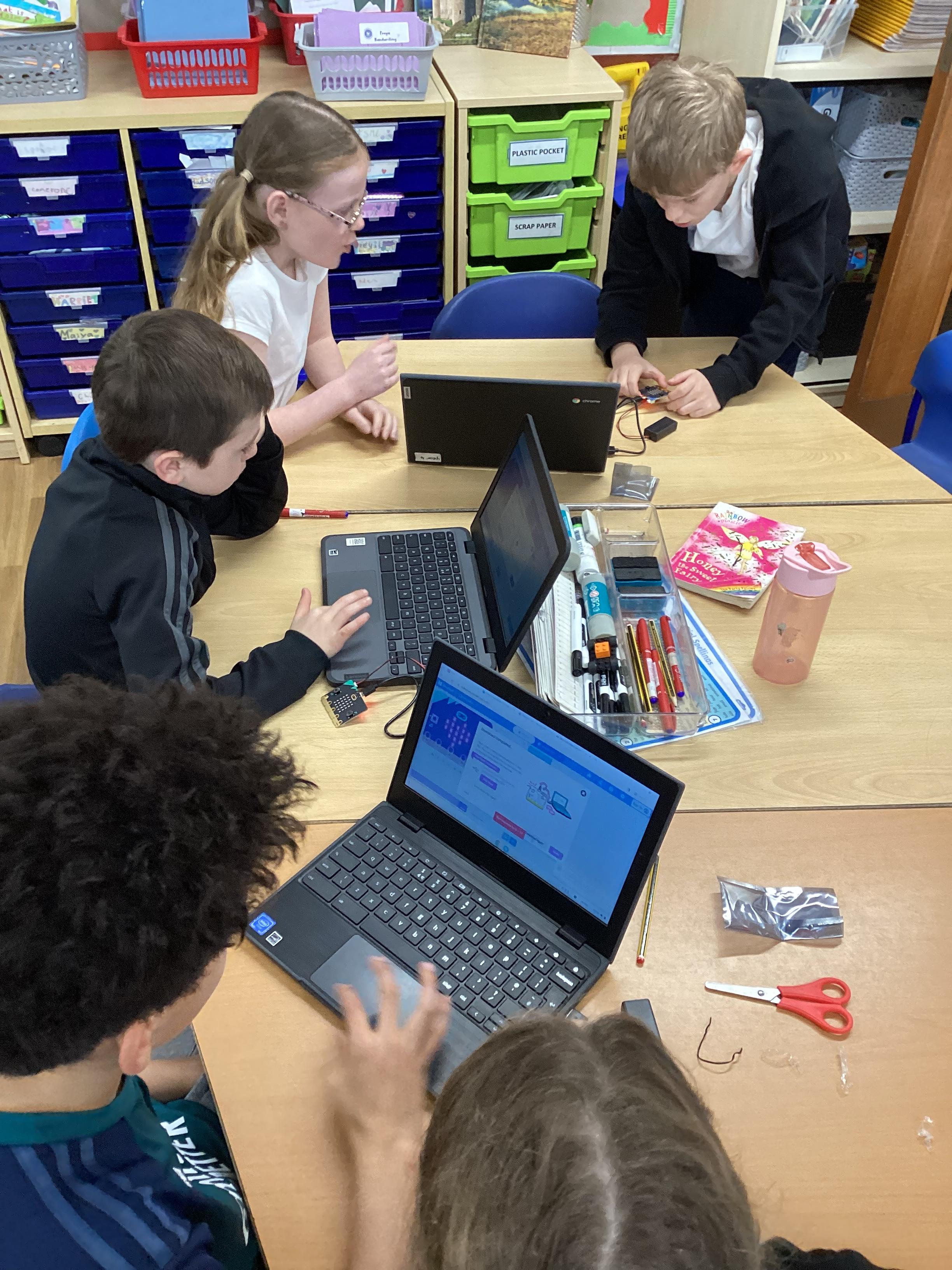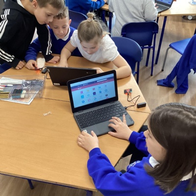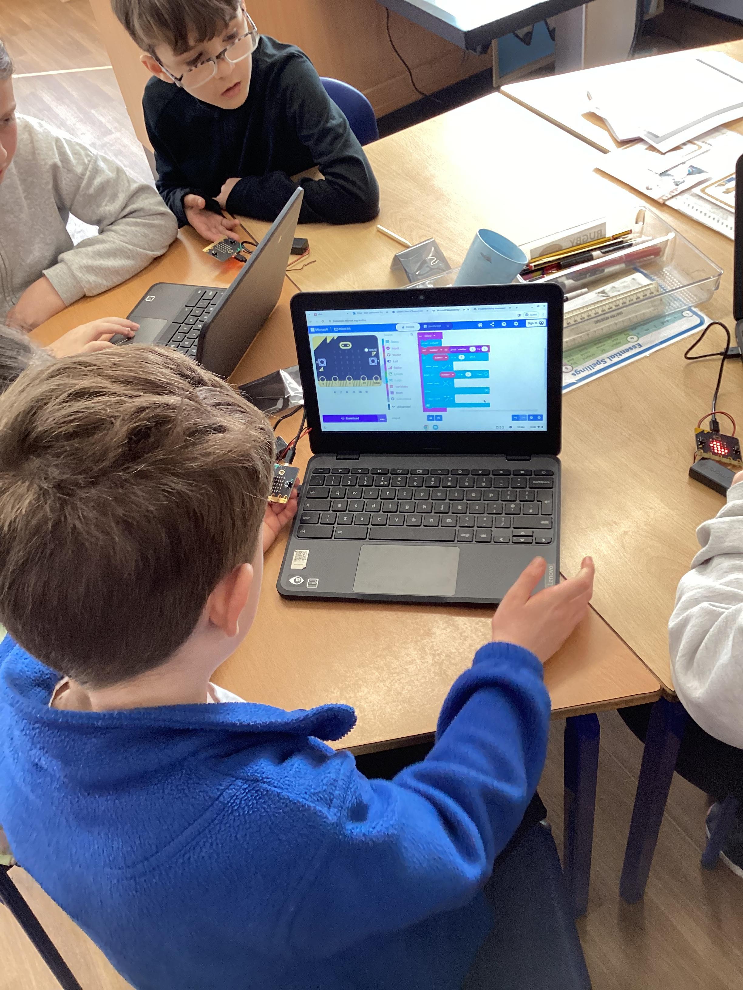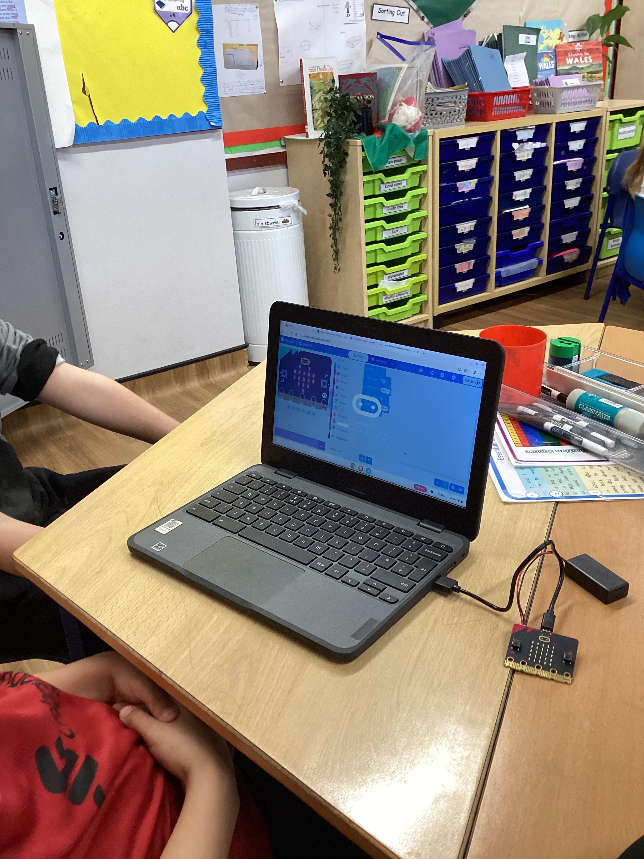 This morning, year 4 learnt how to set up microbits, connect them to a device and download different code to make them do different things!