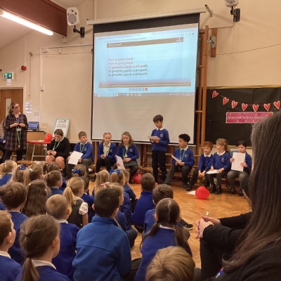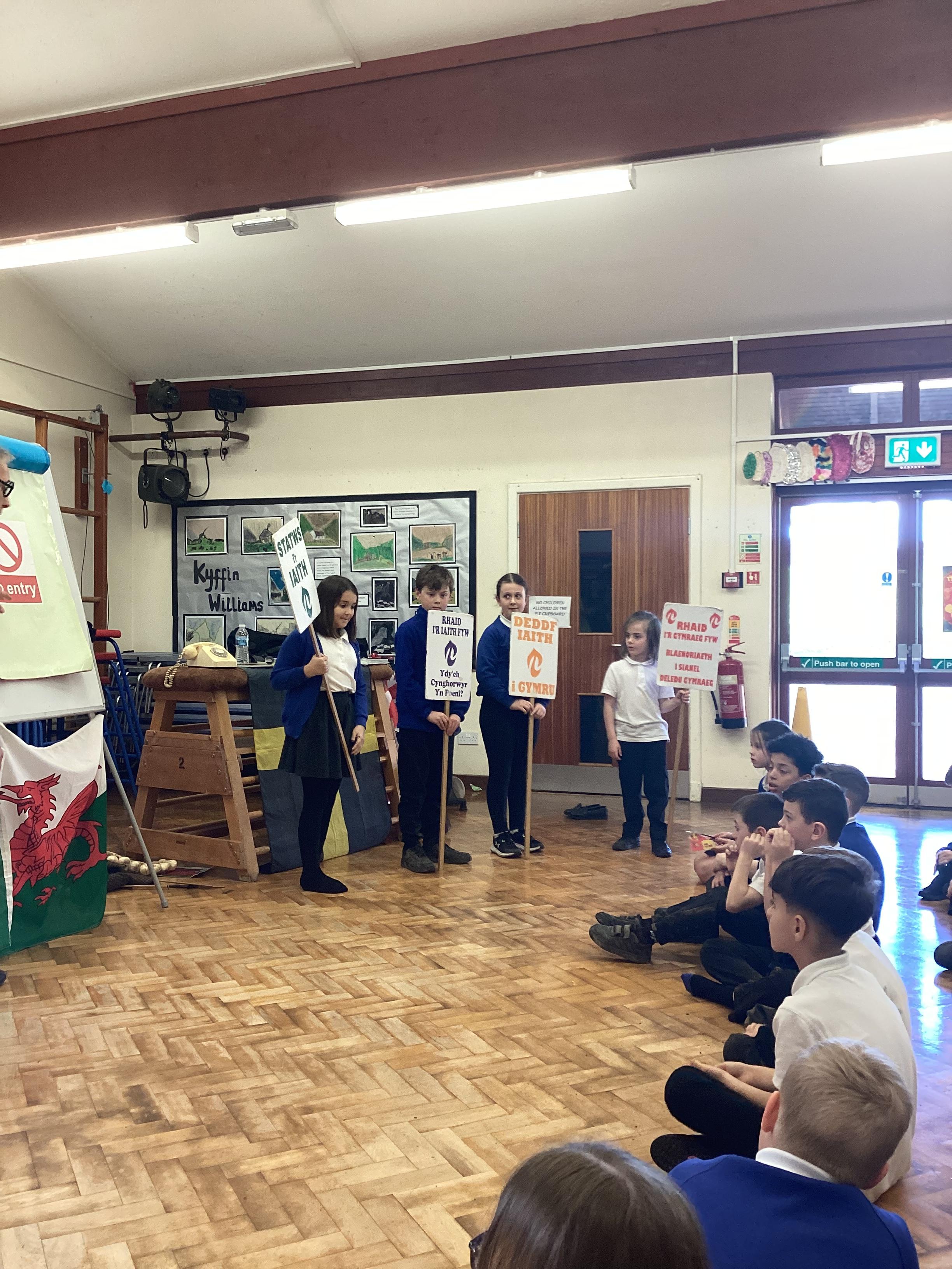 This was a great interactive performance, in which the pupils learnt all about the history of the Welsh language. They were fascinated by the set backs that our language has faced over time and how it has evolved to the language it is today.