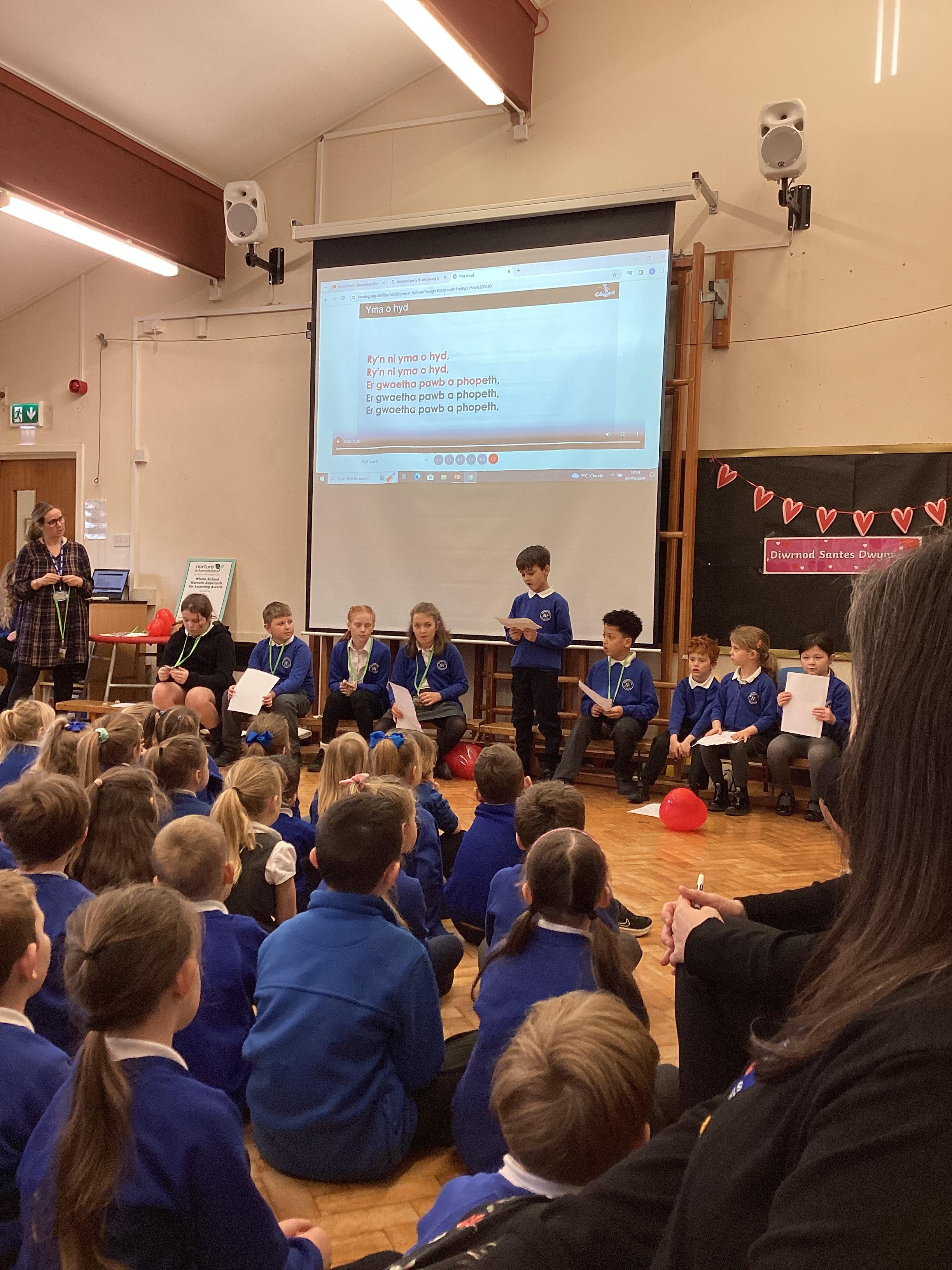 Da iawn to our new Welsh ambassadors today in our Welsh assembly. Cam and Noah are representing year 4 and we are very impressed already!